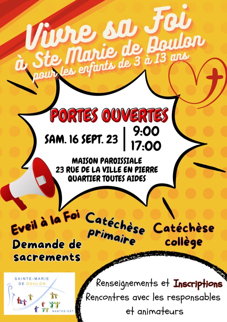 Samedi 16 septembre de 9h00 à 17h00 : Portes ouvertes à la Maison paroissiale, 23 rue de la Ville-en-Pierre